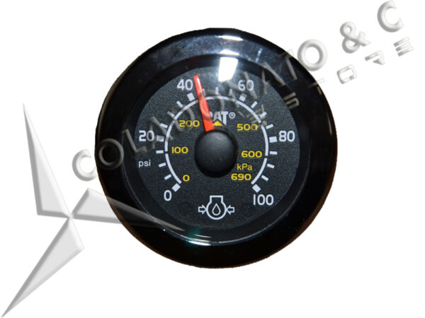 2 inch (50.4 mm) diameter electronic analog oil pressure gauge with 0 to 500 psi range and diagnostic LEDs for high pressure warning and loss of data link signal