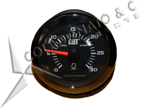 3 inch (76.2 mm) diameter electronic analog tachometer gauge with 0 to 3000 rpm range. Gauge has LCD window for digital display of engine hours and diagnostic codes, and LEDs for overspeed warning and loss of data link signal.