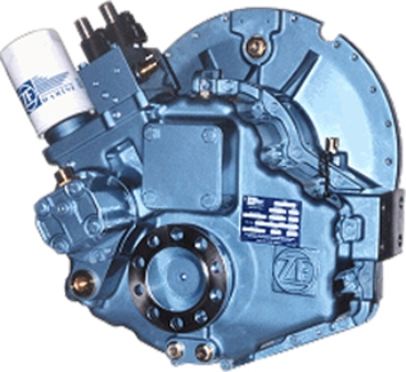 Multi-plate clutch in oil bath. Output shaft angled 7 °